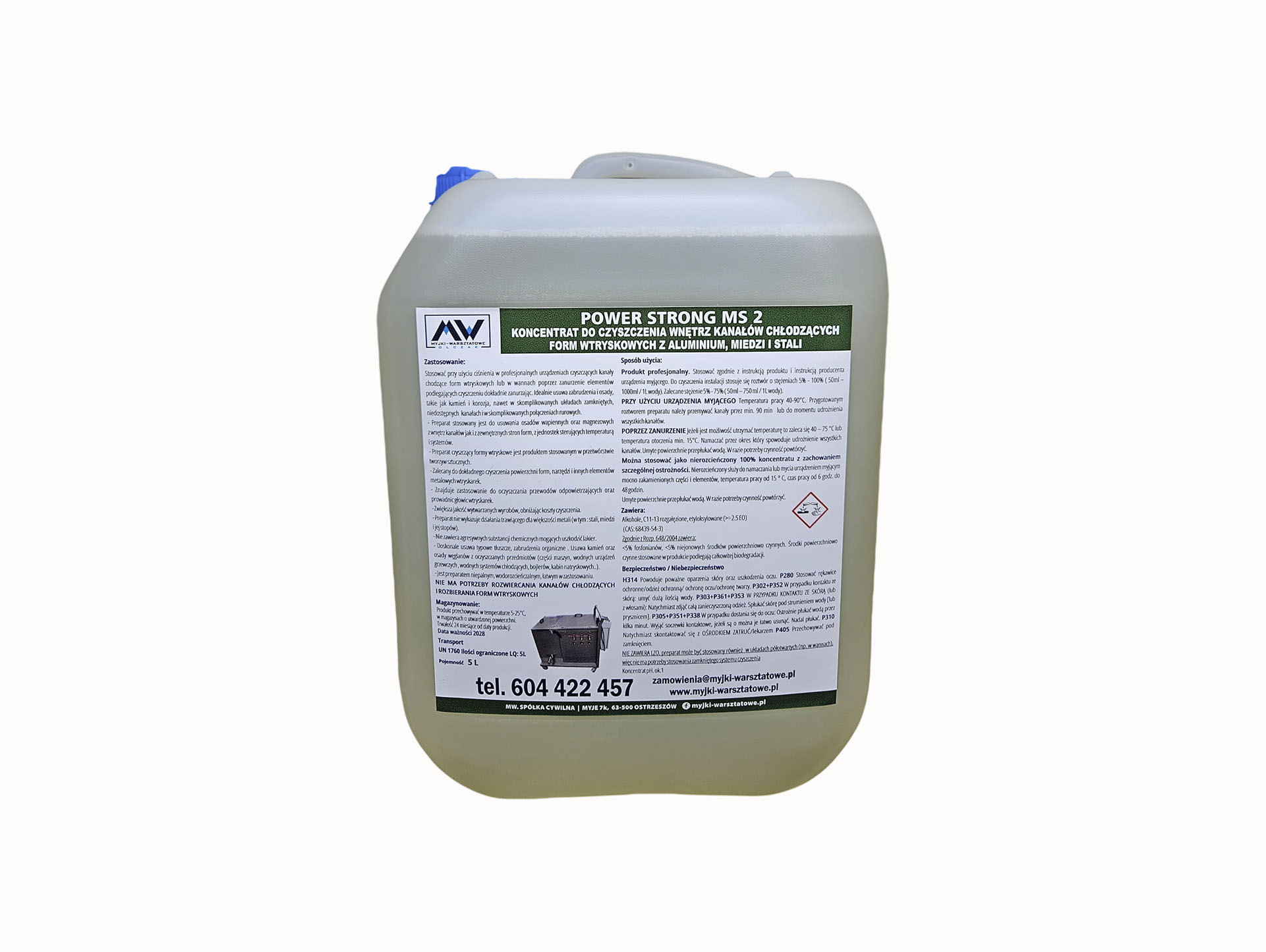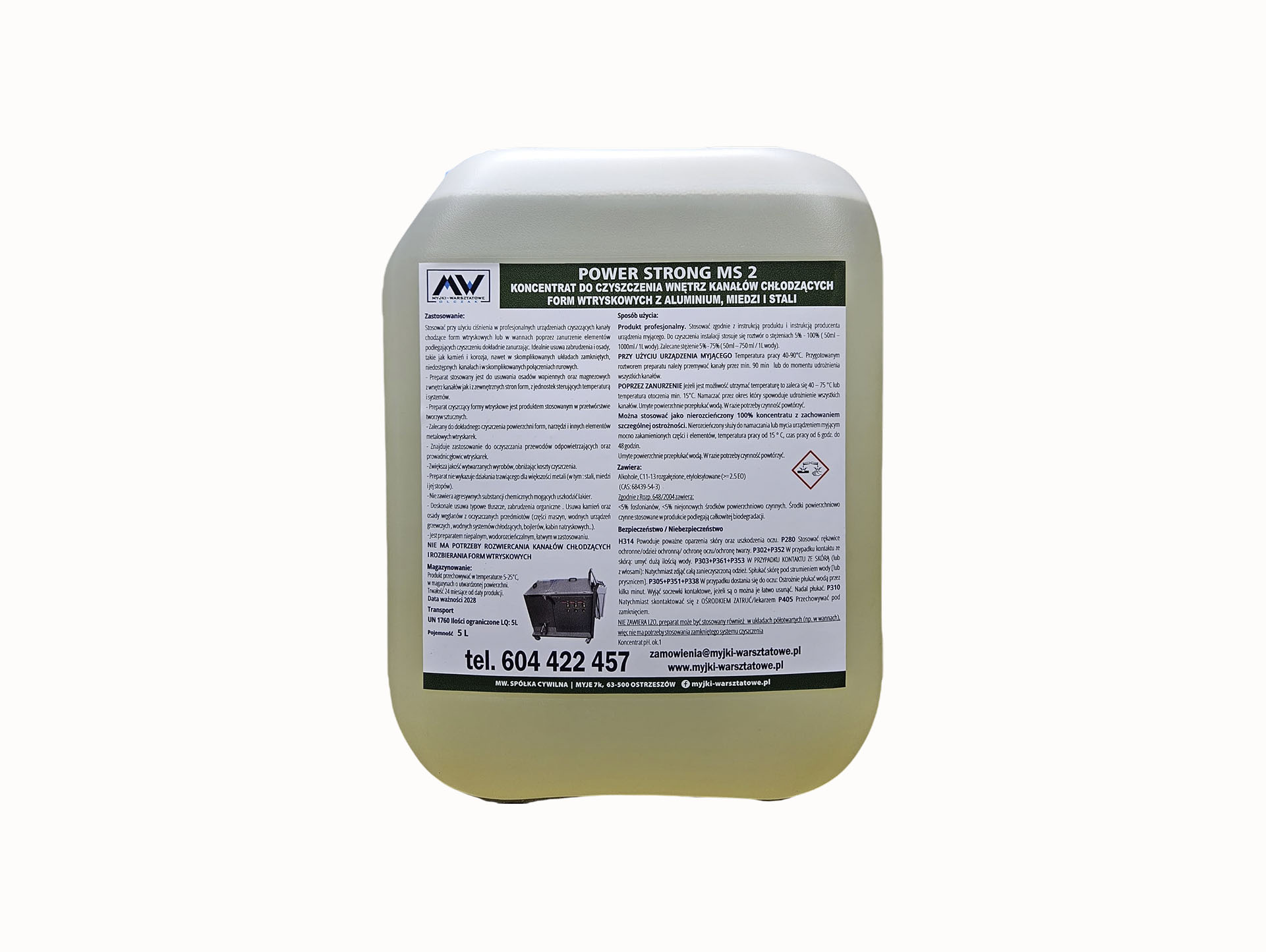 H314 Powoduje poważne oparzenia skóry oraz uszkodzenia oczu. P280 Stosować rękawice ochronne/odzież ochronną/ ochronę oczu/ochronę twarzy. P302+P352 W przypadku kontaktu ze skórą: umyć dużą ilością wody. P303+P361+P353 W PRZYPADKU KONTAKTU ZE SKÓRĄ (lub z włosami): Natychmiast zdjąć całą zanieczyszczoną odzież. Spłukać skórę pod strumieniem wody [lub prysznicem]. P305+P351+P338 W przypadku dostania się do oczu: Ostrożnie płukać wodą przez kilka minut. Wyjąć soczewki kontaktowe, jeżeli są o można je łatwo usunąć. Nadal płukać. P310 Natychmiast skontaktować się z OŚRODKIEM ZATRUĆ/lekarzem P405 Przechowywać pod zamknięciem.
